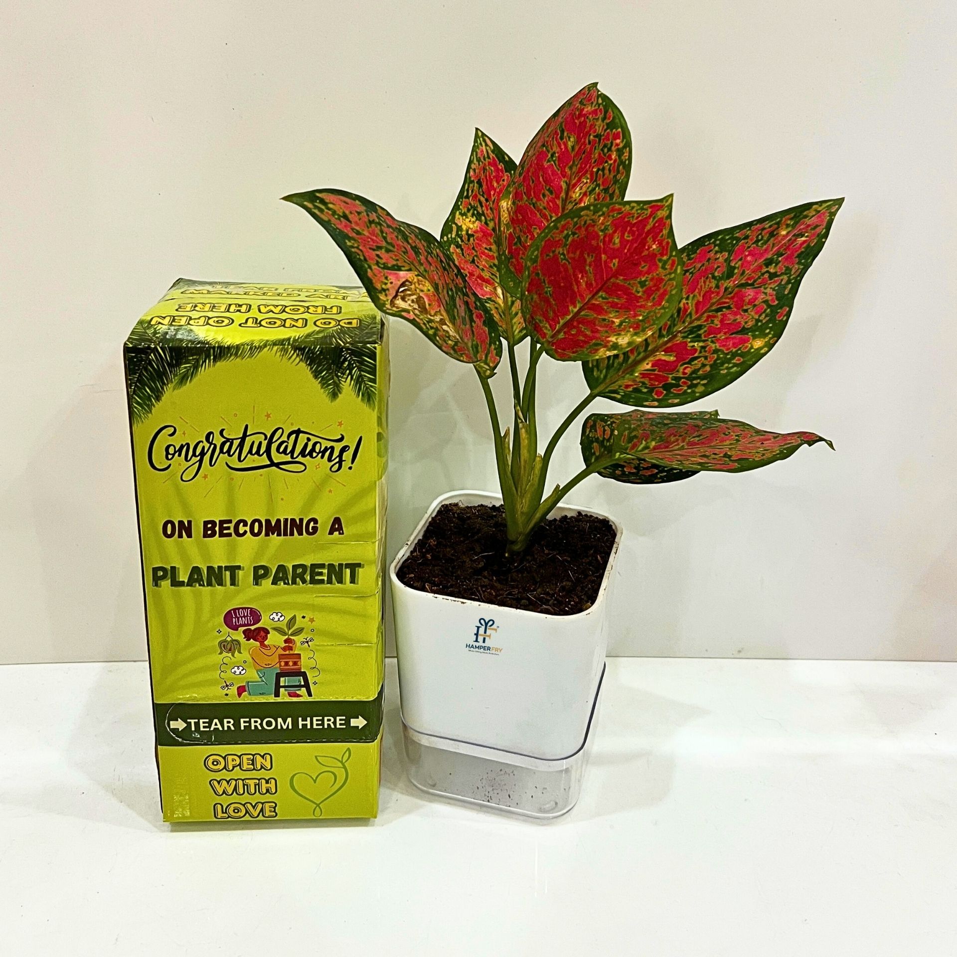 Aglaonema Pink Valentine Plant in Self-Watering Planter – Premium Indoor Desk Plant