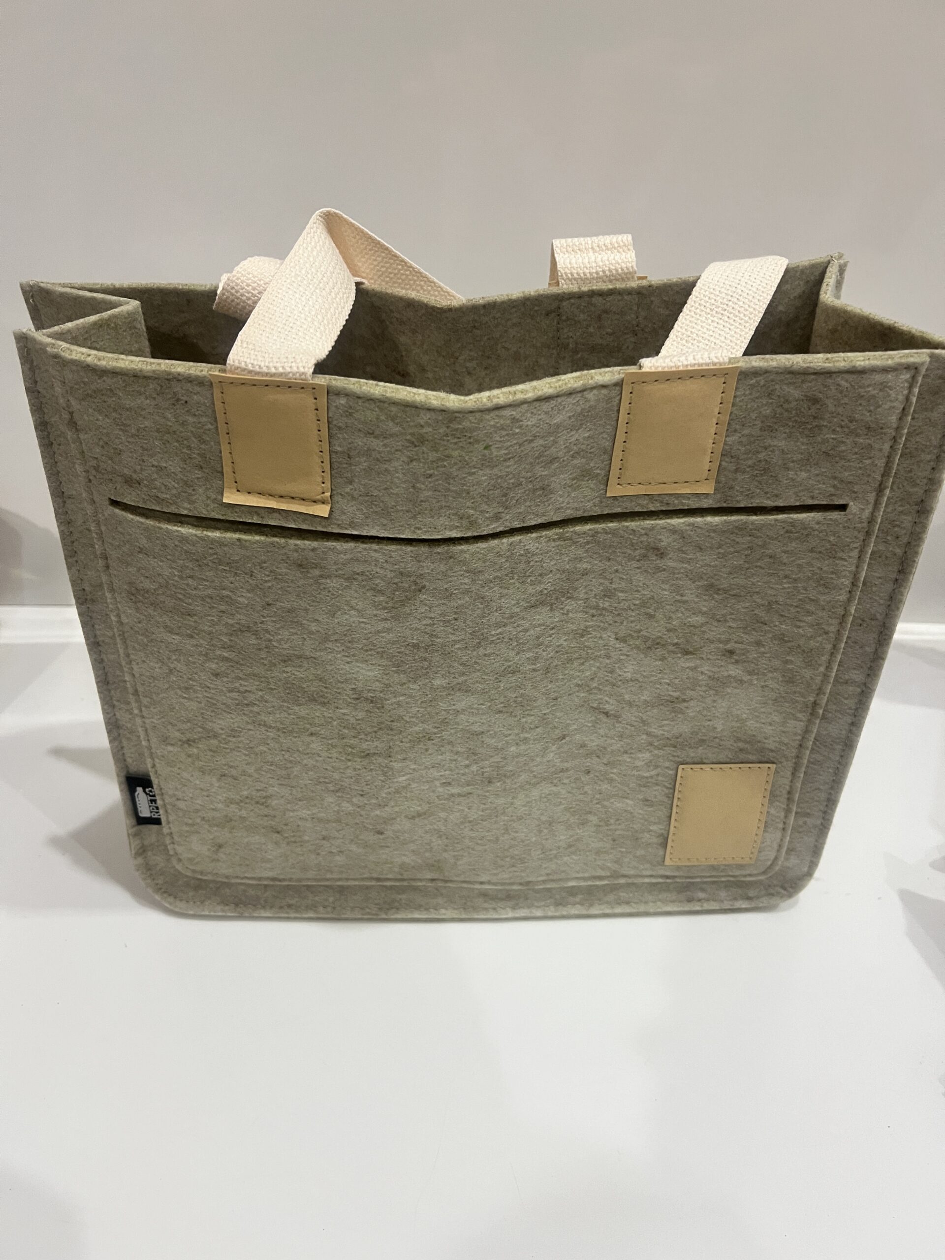 A reusable soft-felt tote with sturdy handles — elegant, eco-friendly, and spacious enough for daily use.