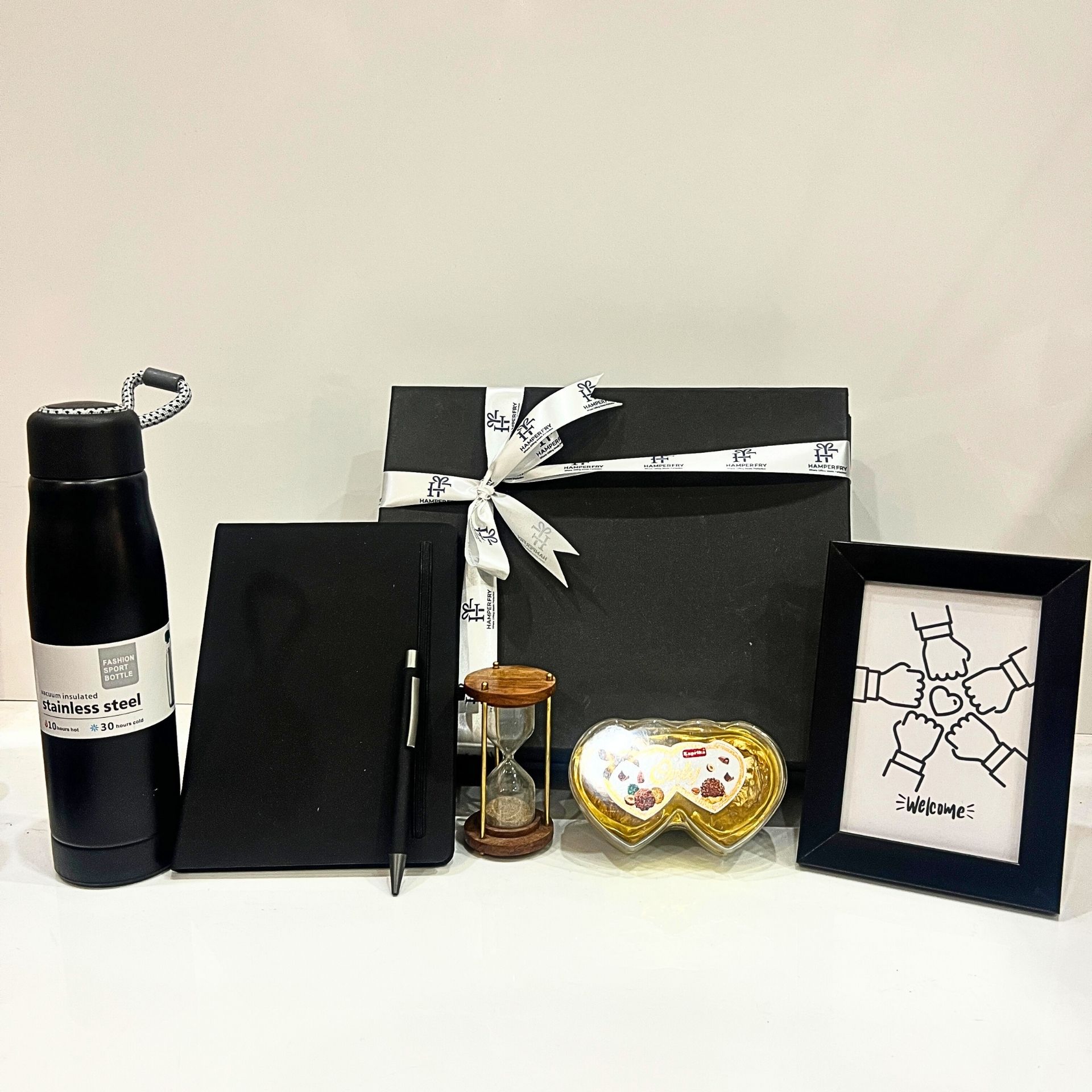 Make every new joiner feel valued with our Elite Black Welcome Kit, a classy and thoughtfully curated corporate hamper designed to create a lasting first impression. With sleek all-black accessories, a touch of inspiration, and functional everyday essentials, this kit is perfect for onboarding, HR gifting, and premium corporate events.