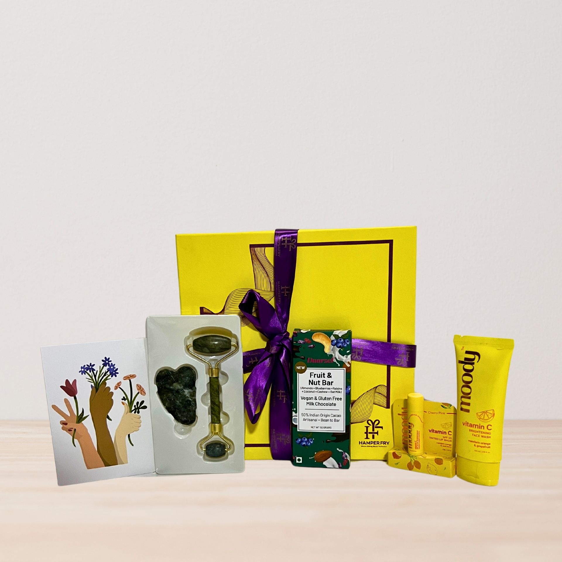 Grace & Glow Self-Care Hamper – Jade Roller Set, Vitamin C Skincare, Fruit & Nut Bar & Greeting Card