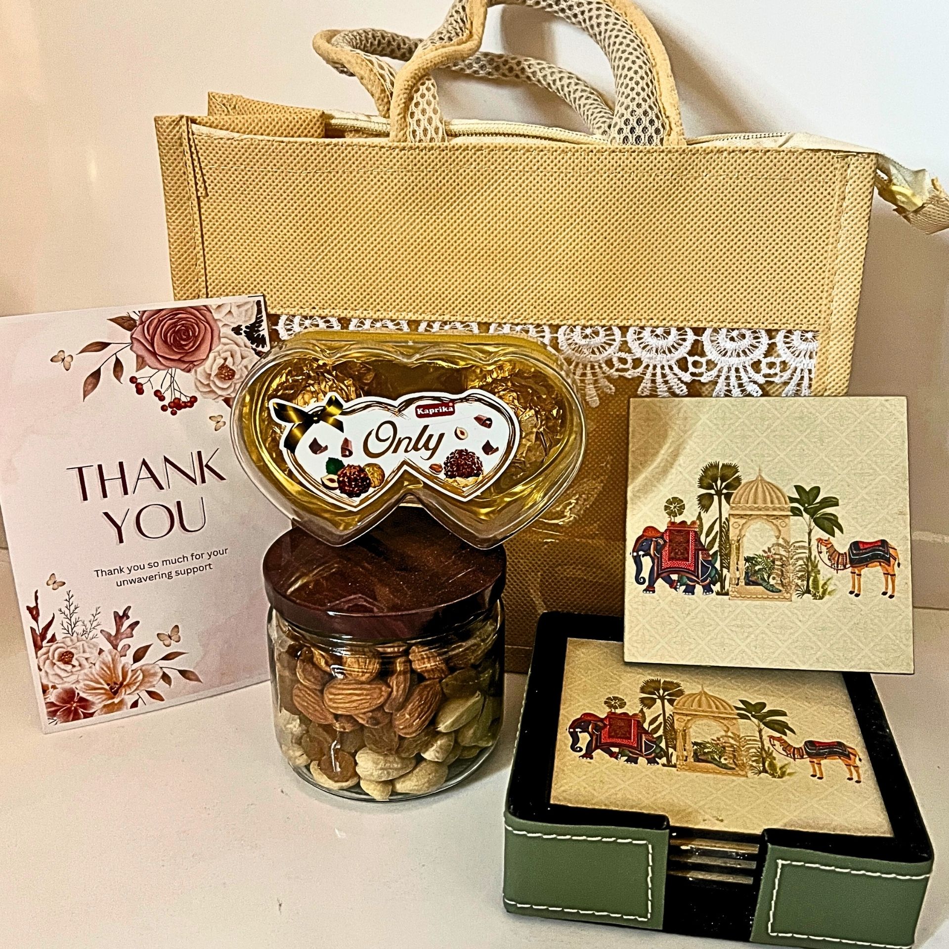 A classy and heartfelt return gift that blends gratitude, taste, and utility. Thoughtfully curated for corporate events, farewell gifting, weddings, pooja return gifts, and special thank-you gestures 💛🙏